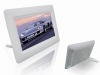 1. 7 inch TFT LCD (16: 9) (Solution: CHEERTEK) 2. Resolution: 480*234 3. Memory Card supported: SD, MS, MMC and USB device. 4. Photo Format supported: JPEG 5. Music Format supported: MP3/WMA 6. Movie (Video) format supported: MPEG1, MPEG2, MPEG4, Divx, and AVI. 7. Built-in 16MB memory 8. Build-in two stereo speakers 9. Calendar/ Clock/ Alarm clock function 10. Hook eyes for application on the wall, support for upright and sideways positioning 11. Operating System: OSD (On Screen Display) and Remote Controller 12. US/UK/EU/AU type adapter, 12V DC/1.0A, 100V-240V AC 13. Languages supported: English, French, German, Spanish, Italian, Portuguese, Dutch and Polish 14. Accessories: Remote controller, DC power adaptor, Stand, User manual